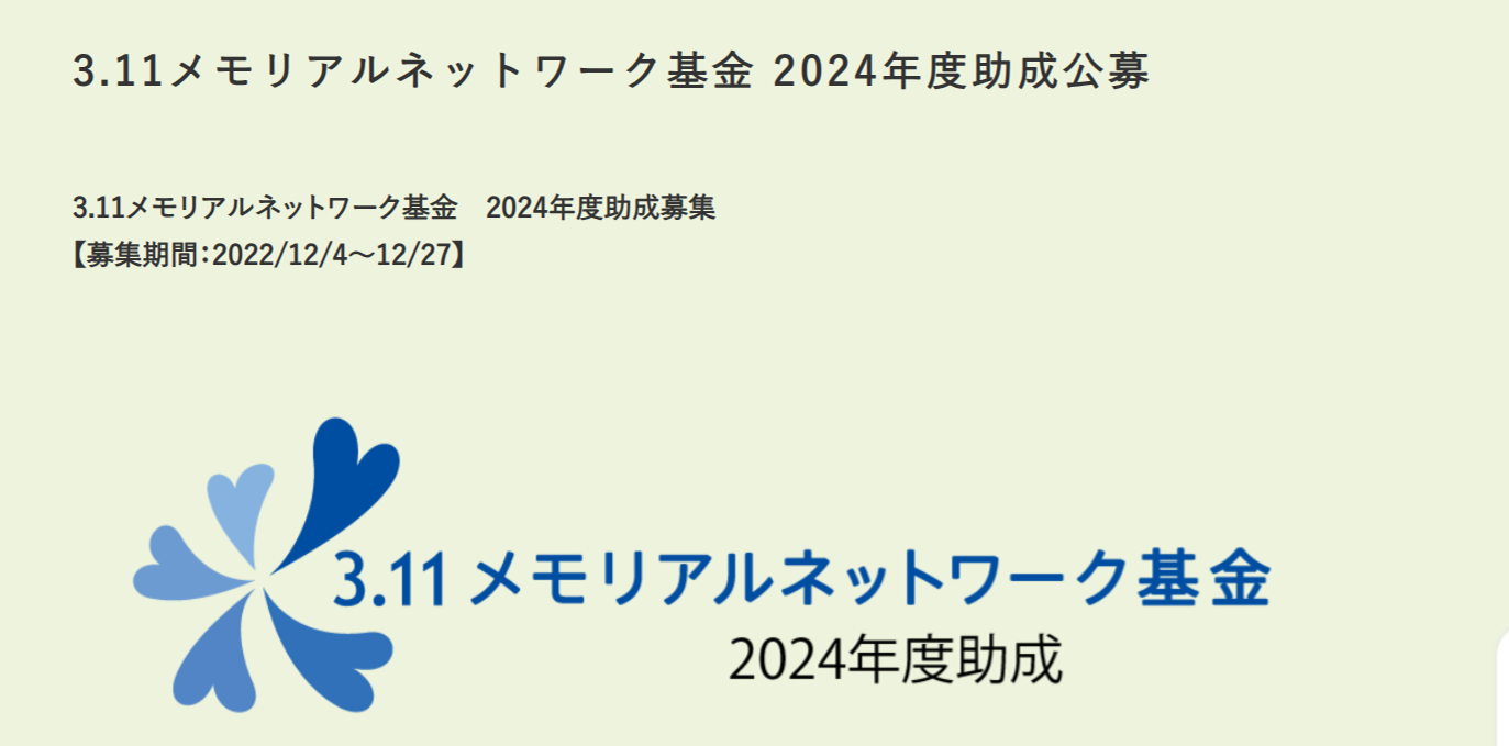 詳しくはこちら⇒3.11メモリアルネットワーク基金 2024年度助成公募