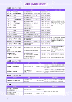 | マザーズジョブサポート山形 | 山形市双葉町1-2-3 山形テルサ1F | 023-665-5915 | 子育て中の女性の再就職などに関するご相談 |